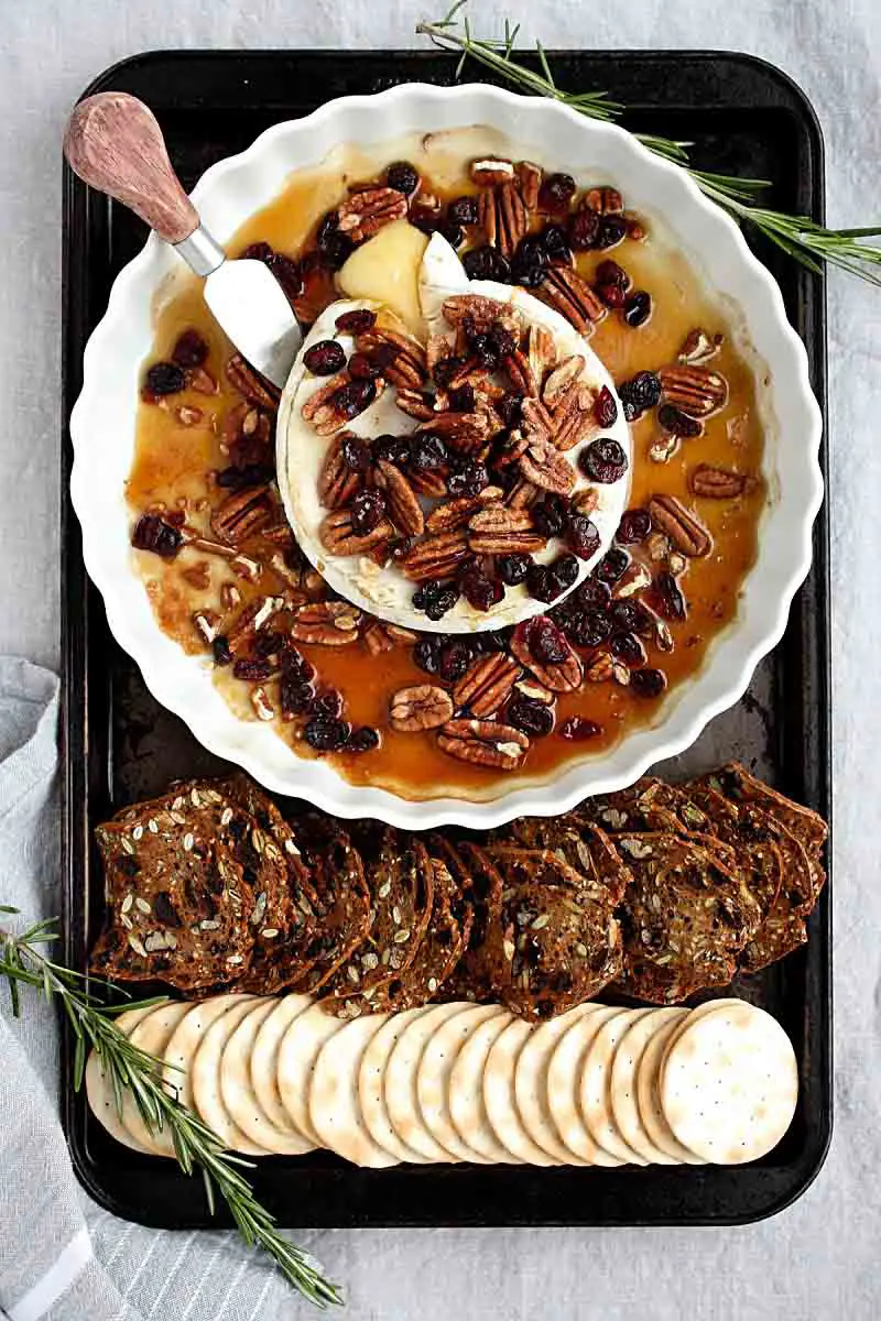 - Sprinkle Toppings: Sprinkle chopped nuts, dried fruits, and/or fresh herbs over the top of the brie. These toppings add texture, flavor, and visual appeal to the dish.
