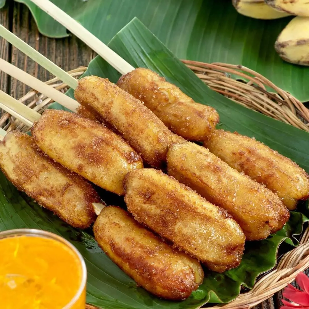 Banana Cue is a popular and delightful Filipino street food that features deep-fried caramelized bananas. This sweet treat is made by skewering saba bananas, a type of cooking banana known for its starchy texture, onto sticks.