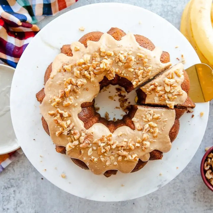 Maple Walnut Banana Bundt Cake is a moist and fragrant cake baked to perfection, with a delightful medley of sweetness and nuttiness with every bite. The warmth of maple syrup adds a comforting depth to the natural sweetness of bananas, while the toasted walnuts help to elevate the overall texture.