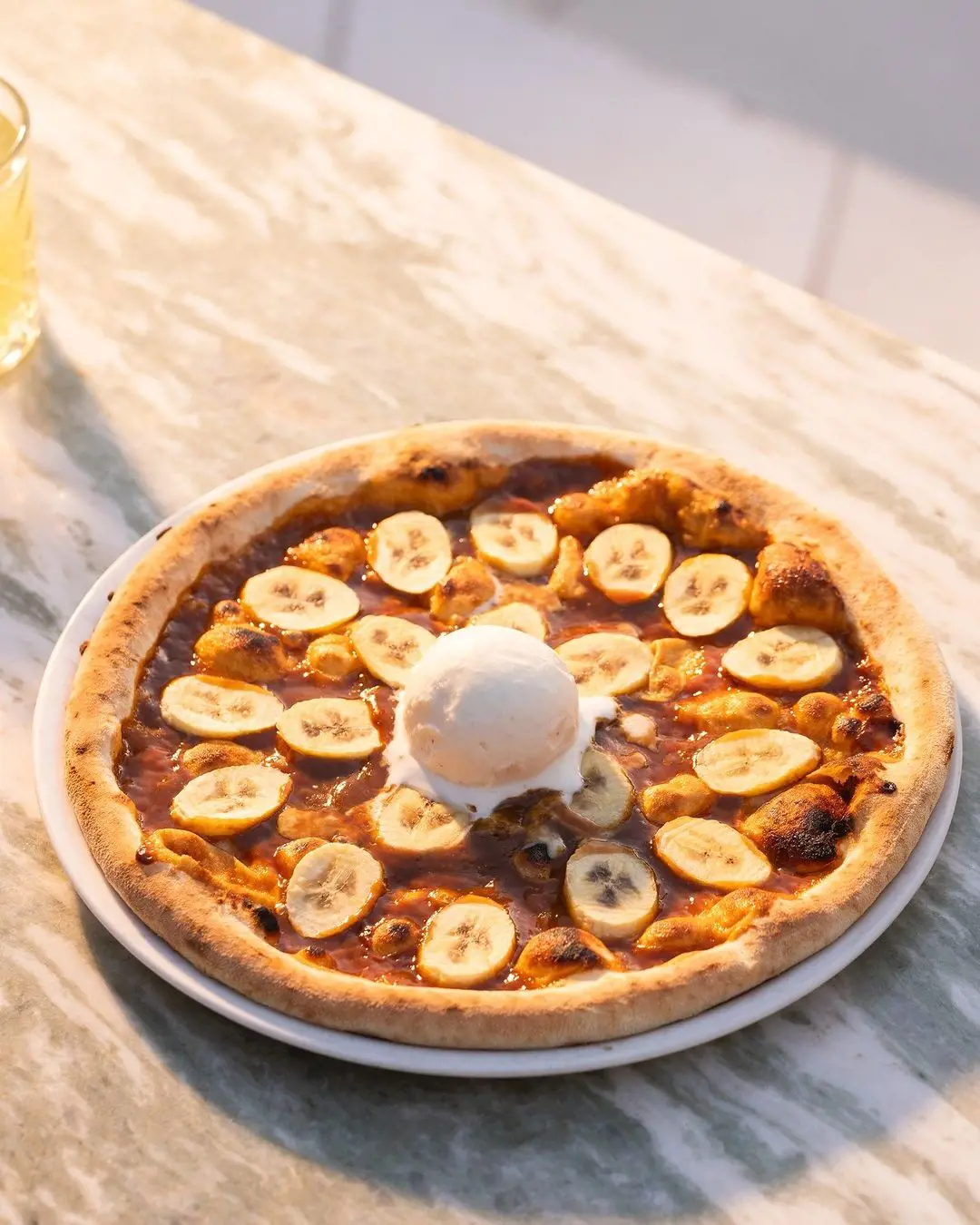 When baked, the bananas will caramelize, enhancing their natural sweetness and creating a gooey, golden topping. This is a creative and crowd-pleasing dessert that showcases versatility of ripe bananas as well as pizzas in the culinary world.