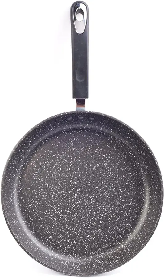 This feature not only promotes healthier meal preparation by reducing added fats but also makes cleaning a breeze. Food effortlessly slides off the surface, and residues are easily wiped away, contributing to the pan's low-maintenance appeal.