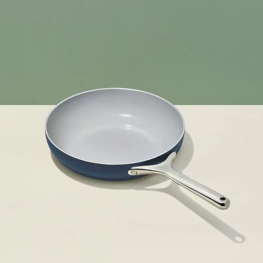The Caraway Frying Pan features a premium ceramic nonstick coating. This PFOA-free coating not only ensures your favorite dishes cook without sticking but also allows you to cook with minimal oil or butter promoting healthier cooking.