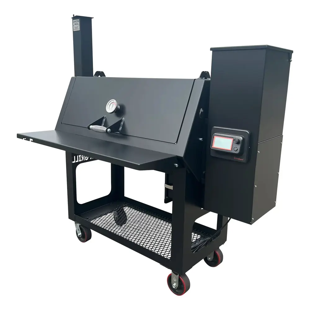 The Lone Star Grillz 20x42 pellet smoker comes with ample space and 6 cooking probes that can be monitored at once. The ceramic hot air ignition is a new feature and also has a PIC controller setup.