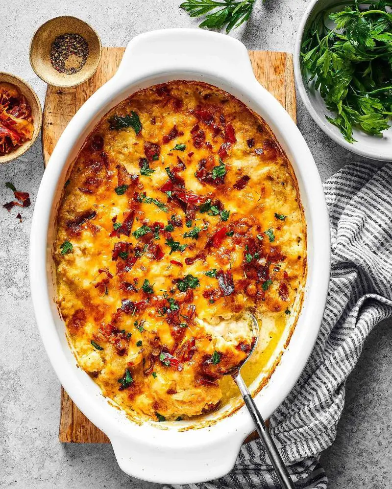 This Cauliflower Casserole has cheesy textures with luxuriously creamy richness, delivering hearty satisfaction, all while maintaining remarkably low carb content. Its irresistible flavor may entice you to savor it as a standalone culinary delight, relishing the intricate layers of taste and indulgence.