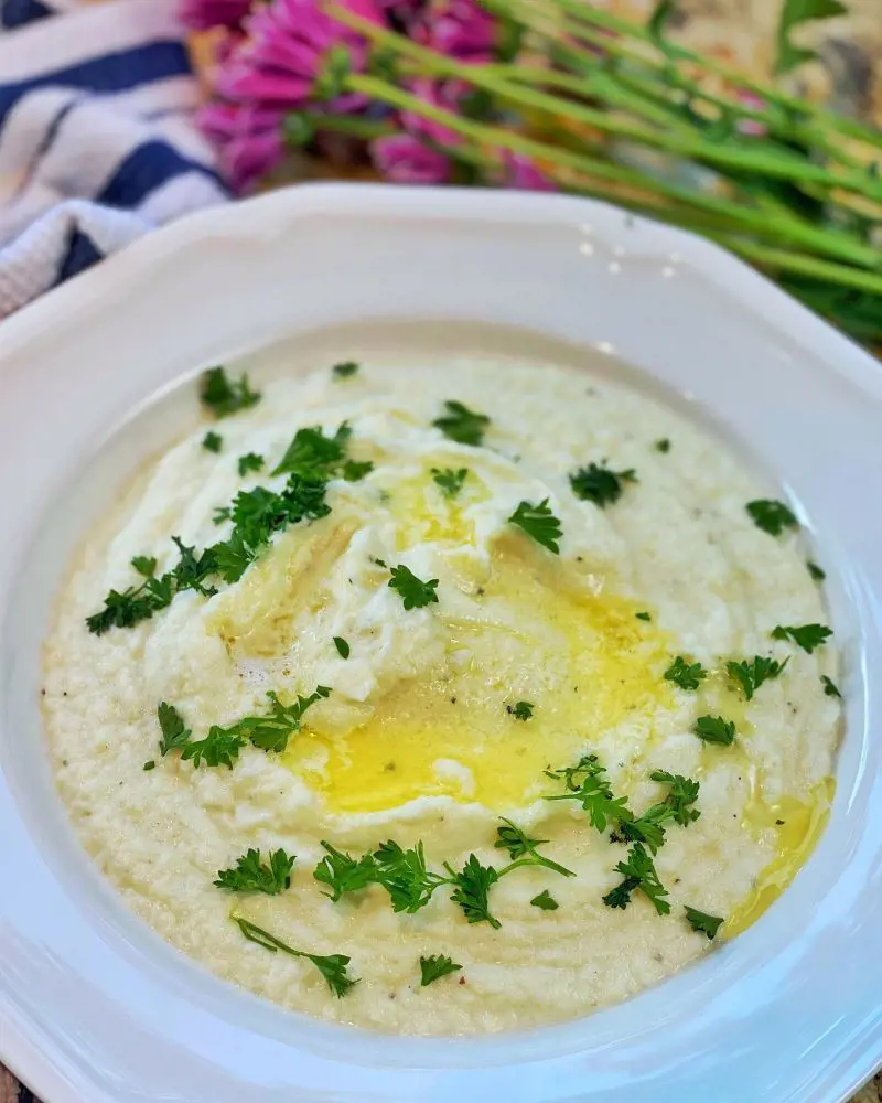 Introducing a rich and nutty flavor profile, roasted garlic transforms this creamy mashed cauliflower into a culinary delight. Each velvety spoonful is enhanced with the subtle sweetness of garlic, creating a delightful harmony of flavors.