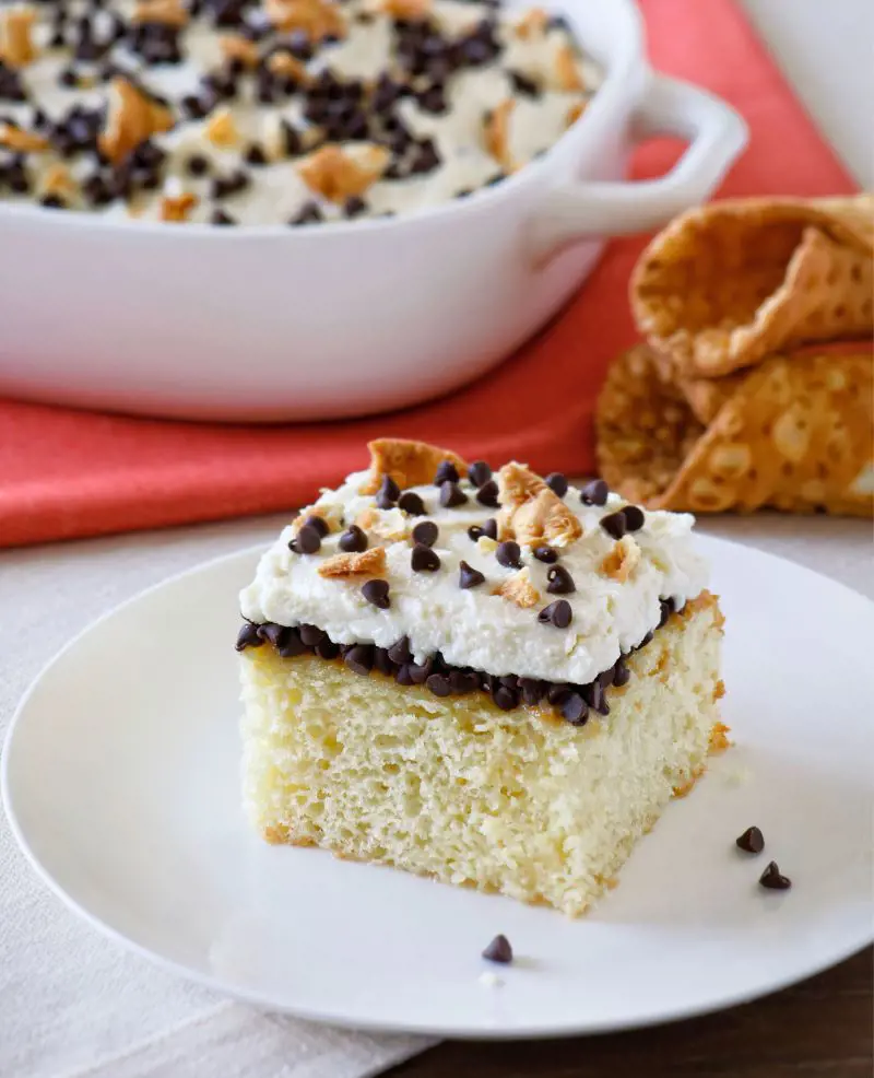 The Cannoli Poke Cake is a versatile and easy-to-make dessert, suitable for both kids and beginners while guaranteeing a crowd-pleasing result. Picture each delectable slice submerging into a pool of sweet ricotta, creating a rich and satisfying flavor profile.
