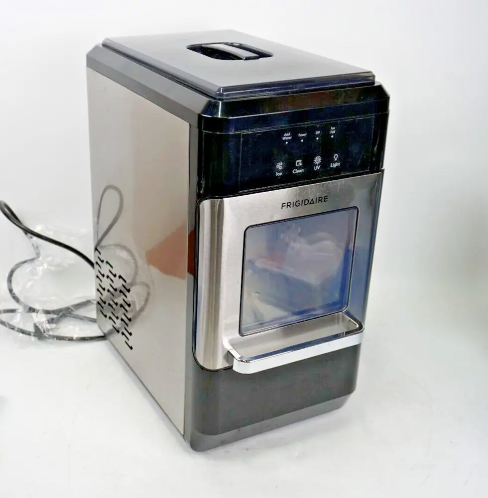 If you want to elevate your drink game, this model from Frigidaire is for you. This countertop ice maker produces chewable, crunchy ice nuggets that are not only enjoyable to munch on but also ideal for enhancing the flavor and presentation of your favorite beverages.