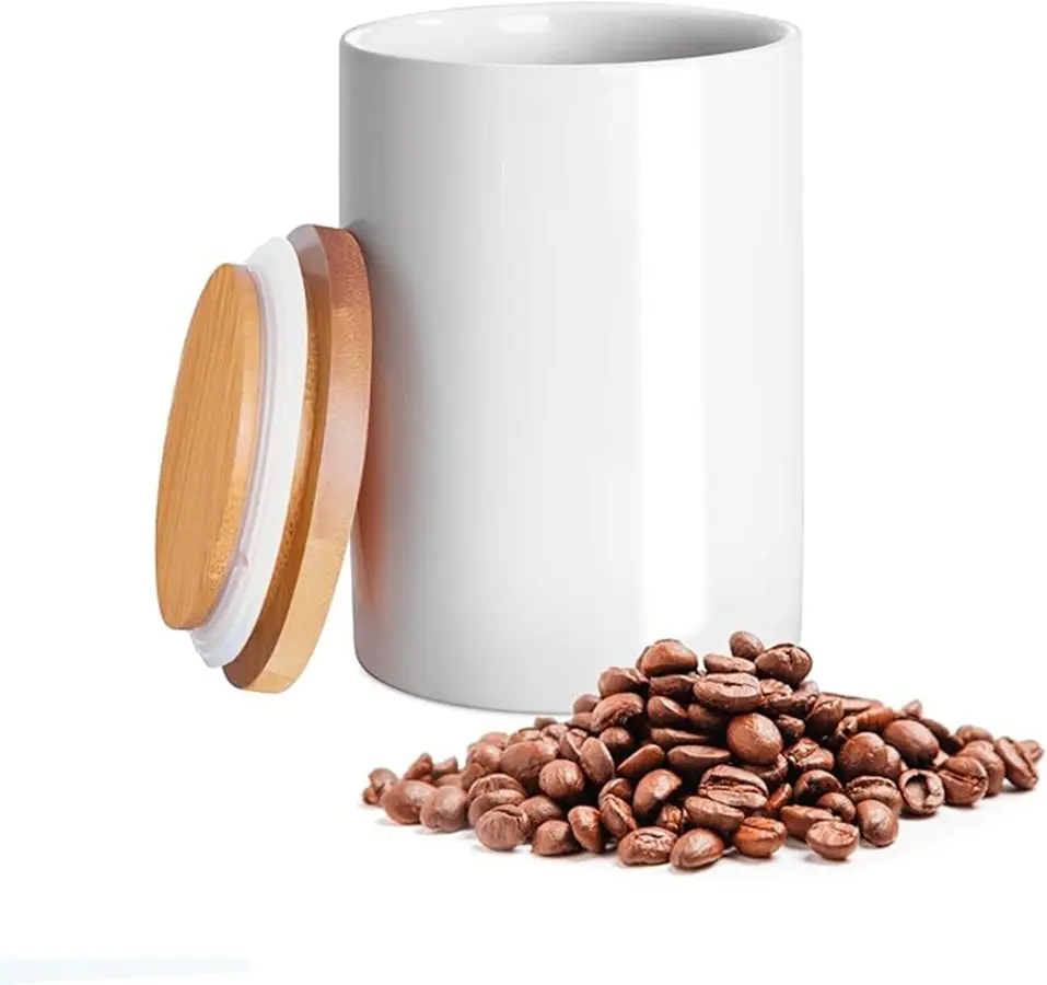13. 77L Ceramic Food Storage Canister with Airtight Wooden Lid