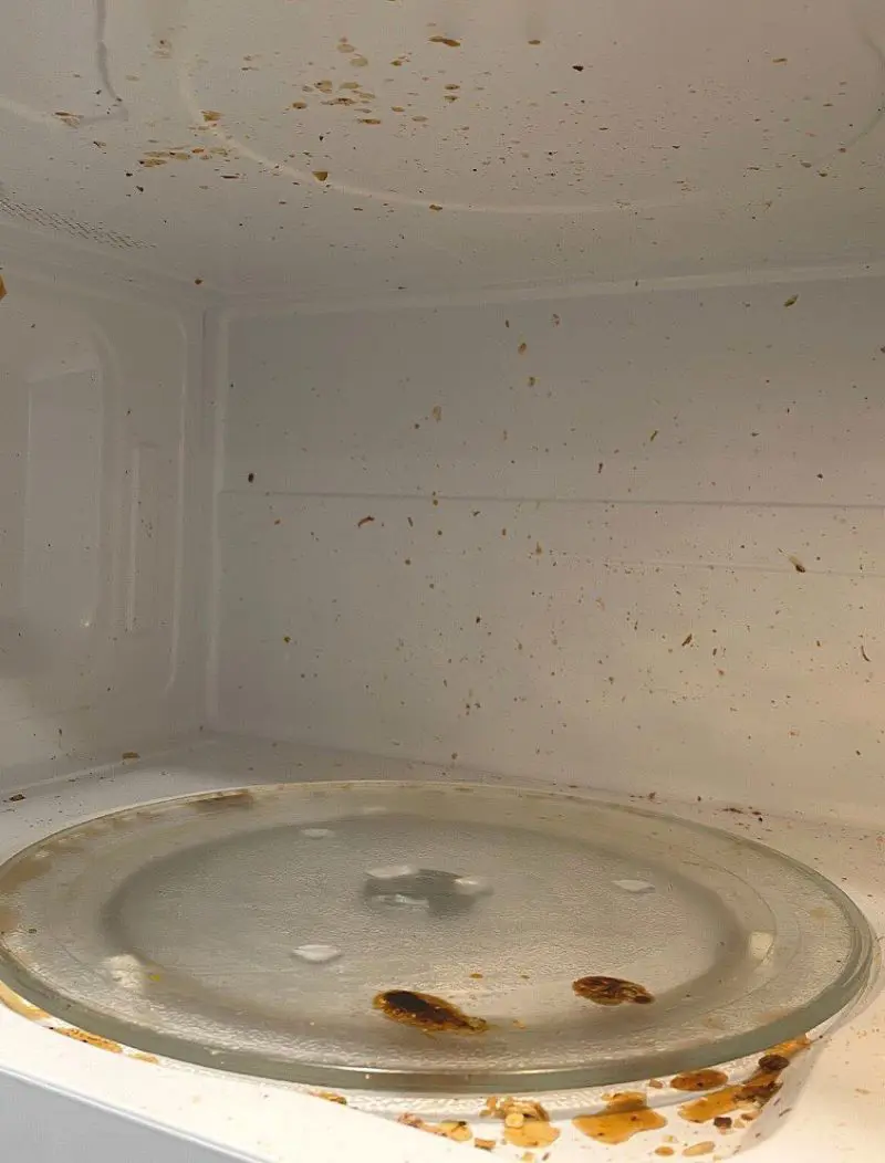 Food splatters: When food bubbles and pops, it leaves tiny bits all over the inside. These leftovers can burn and stink when you use the microwave again.