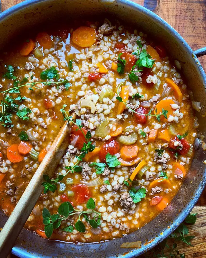This Beef Barley Soup is packed with flavor, remarkably easy to make, and perfect for warming up on a cold day. It's a one-pot meal that's ready in just an hour, featuring ground beef, barley, and vegetables. Using basic ingredients, it offers high flexibility for customization.