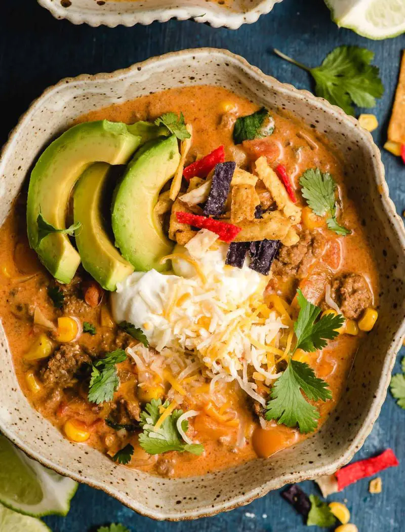 From pinto beans and ground beef to kidney beans, corn, tomatoes, chiles, and more, taco soup is a perfect blend of textures and tastes. What sets it apart is the fantastic flavor profile achieved by the combination of taco seasoning and ranch seasoning, making each spoonful a truly satisfying experience.