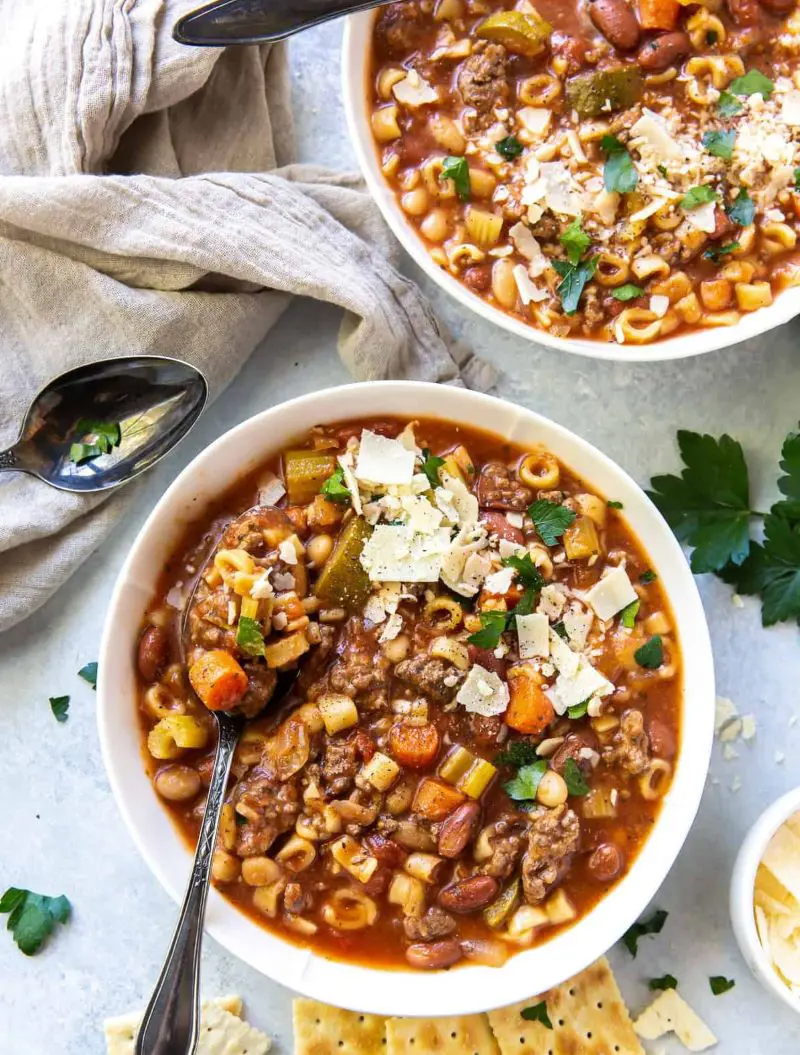 This slow cooker hamburger minestrone soup is packed with fresh veggies, ground beef, and pasta, creating a satisfying standalone meal. Pair it with a slice of crusty bread and a glass of wine, and dinner is ready! If you find yourself with extra ground beef from the recipe and are pondering what to do, check out our collection of Ground Beef and Rice Dishes for creative leftovers.