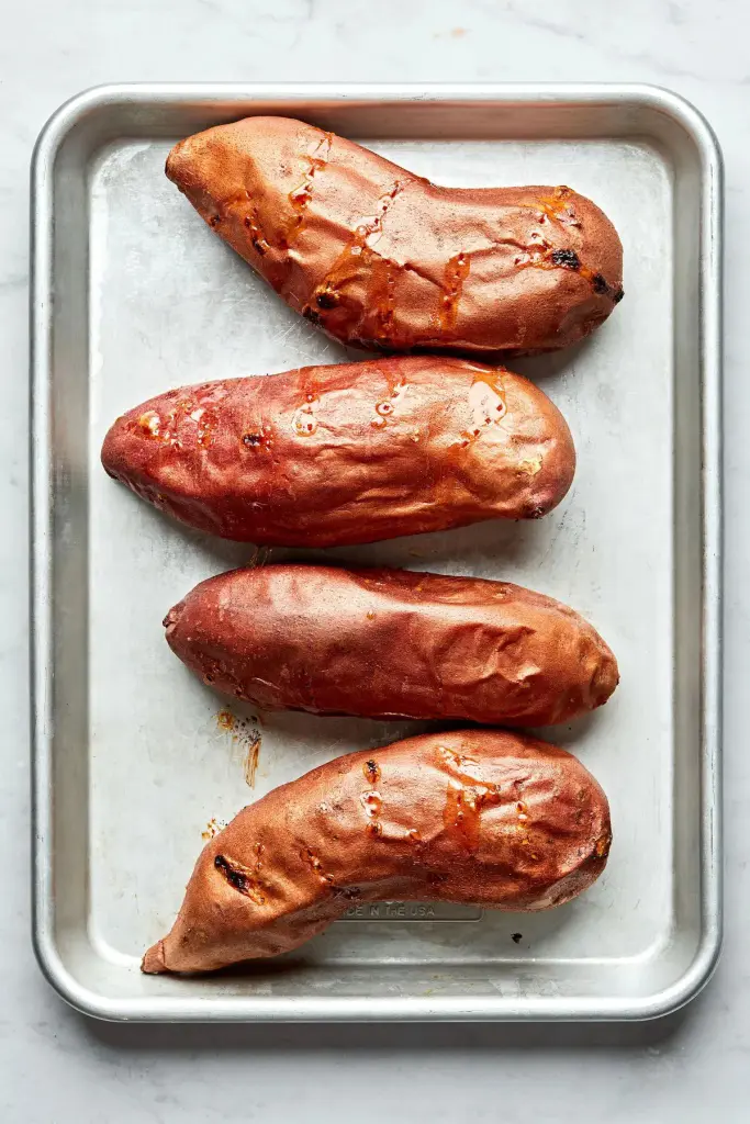 A cooling rack can be useful for allowing the baked sweet potatoes to cool slightly after removing them from the oven. It allows air to circulate around the potatoes, which helps maintain a crispy skin.
