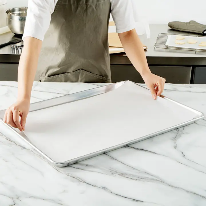 Choose a baking sheet with raised edges to prevent any oils or juices from the potatoes from dripping into the oven, which can cause smoke or unpleasant odors. A heavy-duty, light-colored aluminum baking sheet is ideal as it conducts heat well without browning the bottom of the potatoes too quickly.