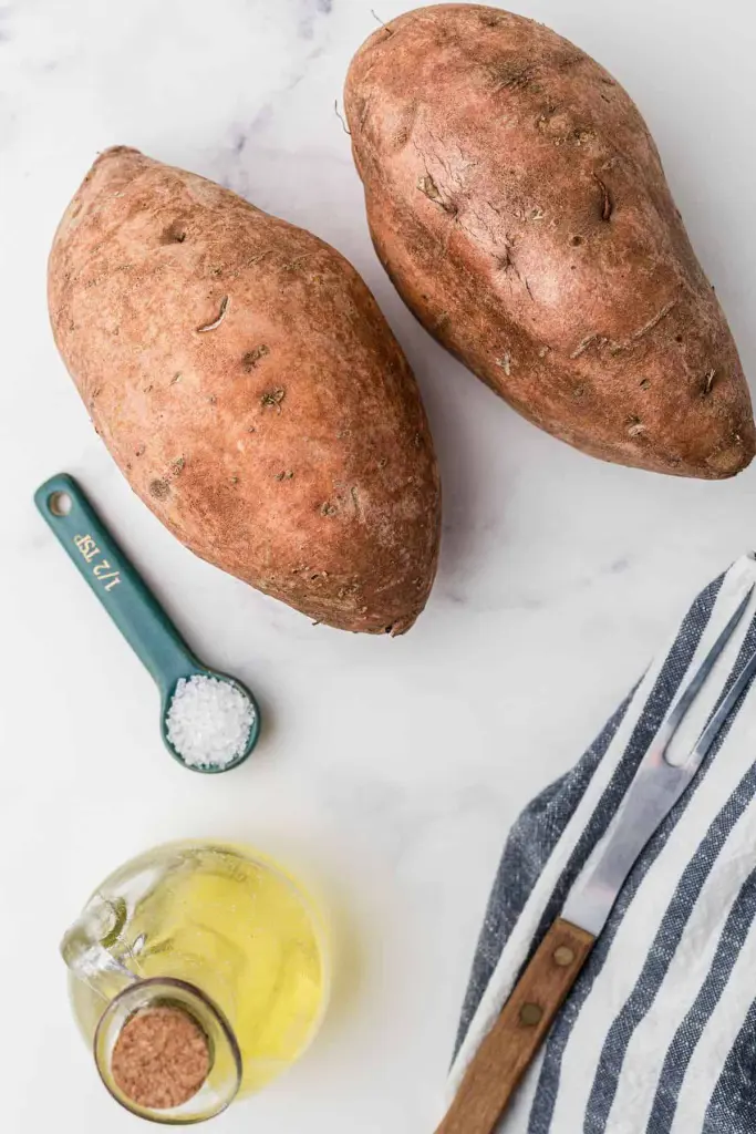 Baked sweet potatoes are a simple yet delicious dish that requires only two main ingredients: sweet potatoes and oil.
