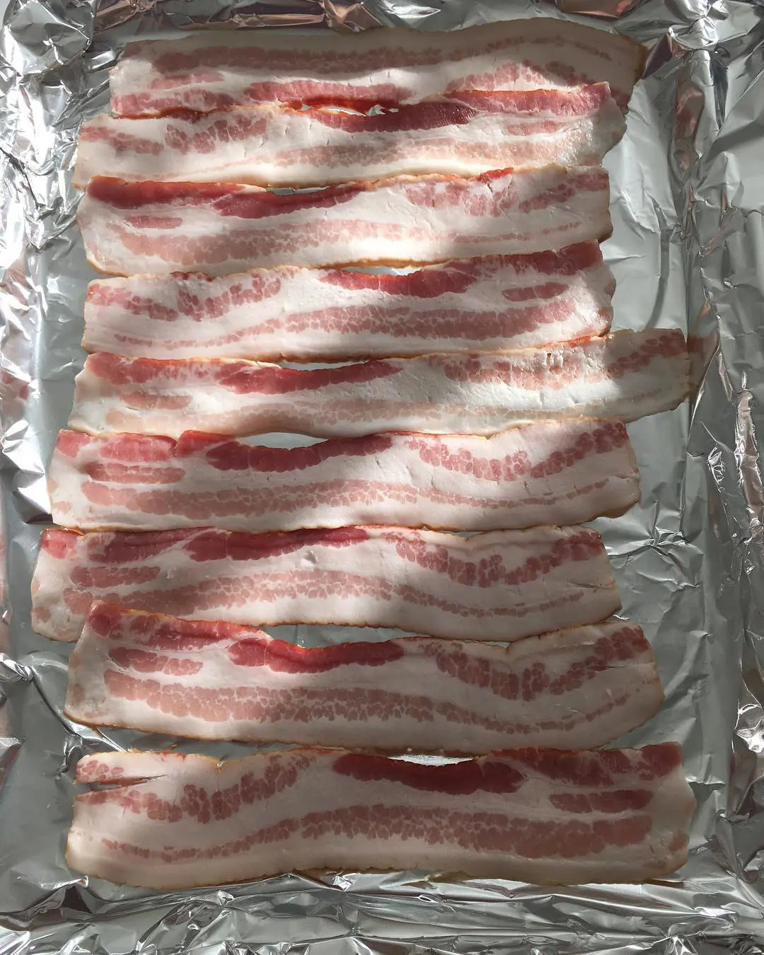 If you like extra crispy bacon, set a cooling rack in the lined baking sheet laying the strips on the rack. This allows the bacon to lift off of the pan a bit, letting the grease drip down and cook the bacon crisper.