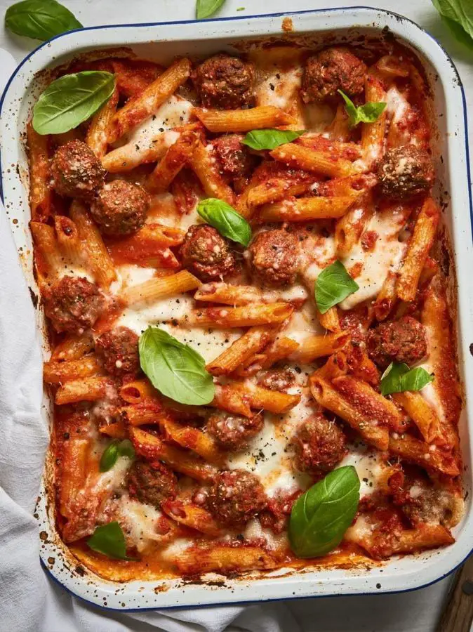 Layer the meatballs with pasta, sauce, and cheese in a baking dish for a cheesy, comforting casserole.