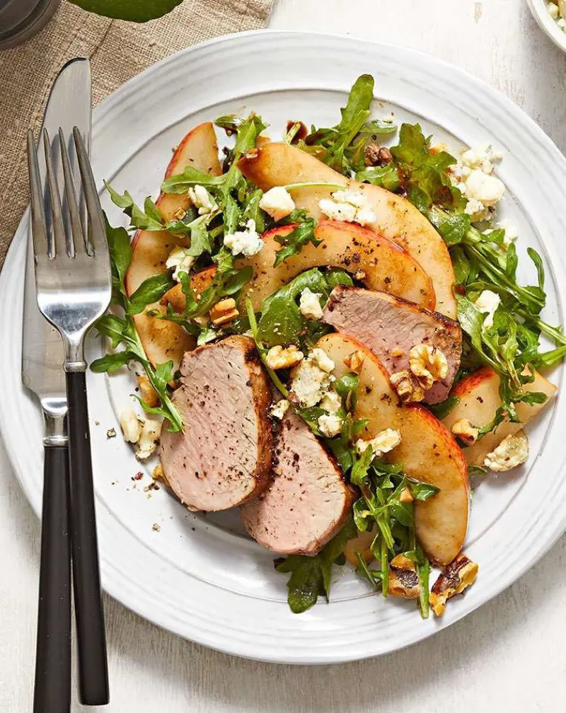 Green salads are best when it comes to pairing them with pork tenderloin or any kind of meat. It is because green salads are made from green veggies which are filled with fiber and other essential nutrients. The nutrients help to digest the meat quickly and keep you light. You can enjoy this combo for lunch or dinner.