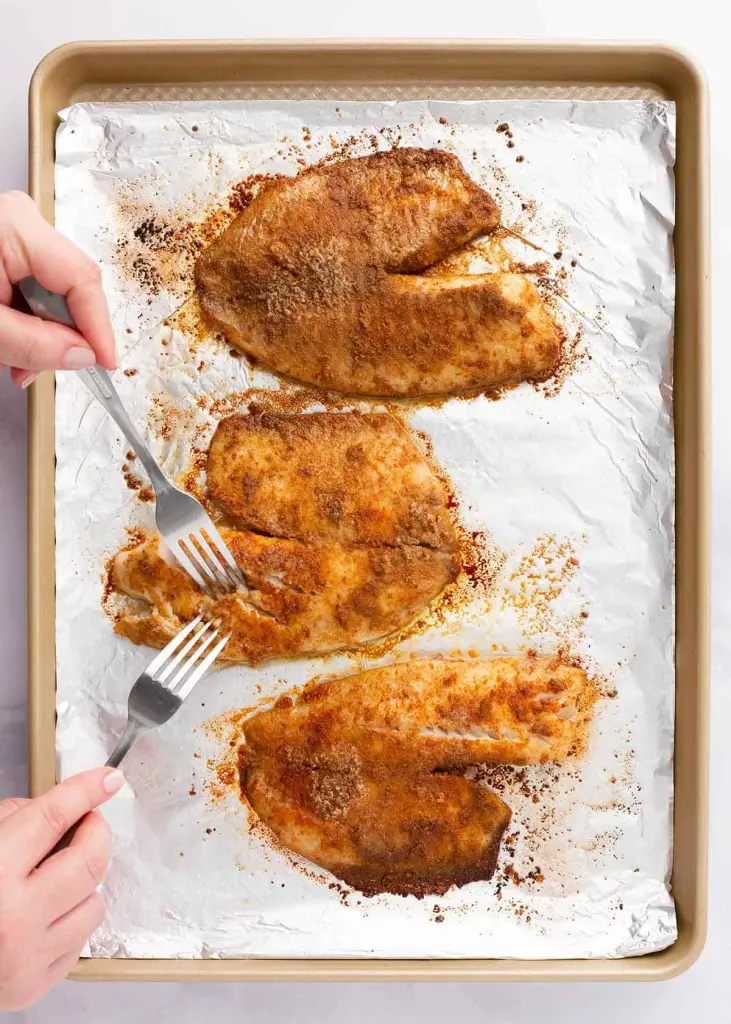 Place seasoned tilapia fillets on a baking sheet.
