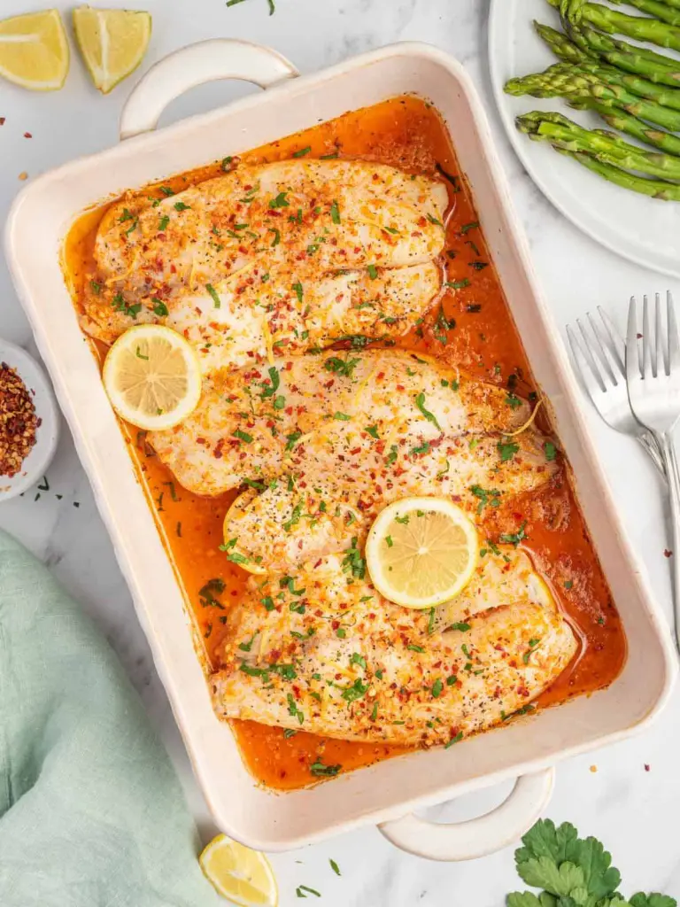 Butter adds richness and flavor to the dish. However, if you prefer a dairy-free option or want a different flavor profile, olive oil makes an excellent substitute. Both ingredients will help to keep the fish moist during cooking and contribute to a delicious final product.