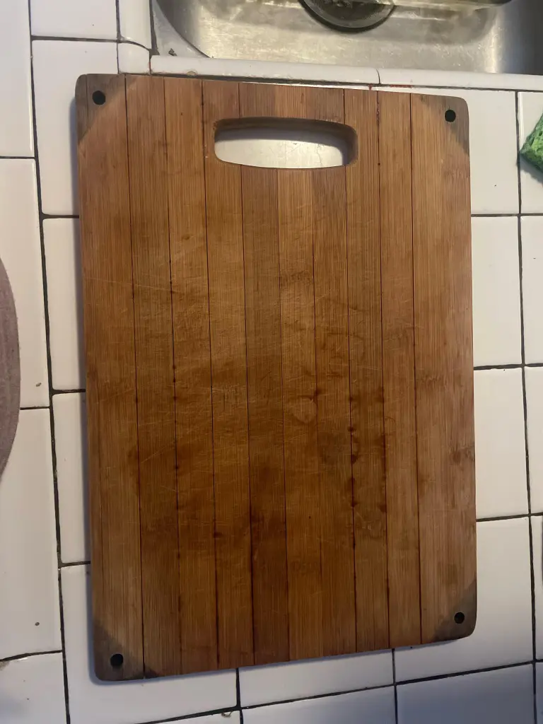Begin by thoroughly removing all food remnants from your cutting board. Use a scraper or the back of a knife to gently scrape off any stuck-on bits. For smaller particles, you can use a dry paper towel or cloth to brush them away. Pay close attention to the corners and any grooves in the board where food particles might hide.
