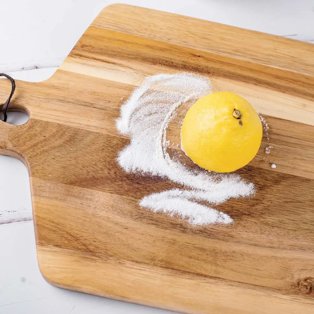 This natural cleaning method is excellent for the monthly maintenance of your wooden cutting board. It helps deodorize and brighten the wood while providing a gentle clean.
