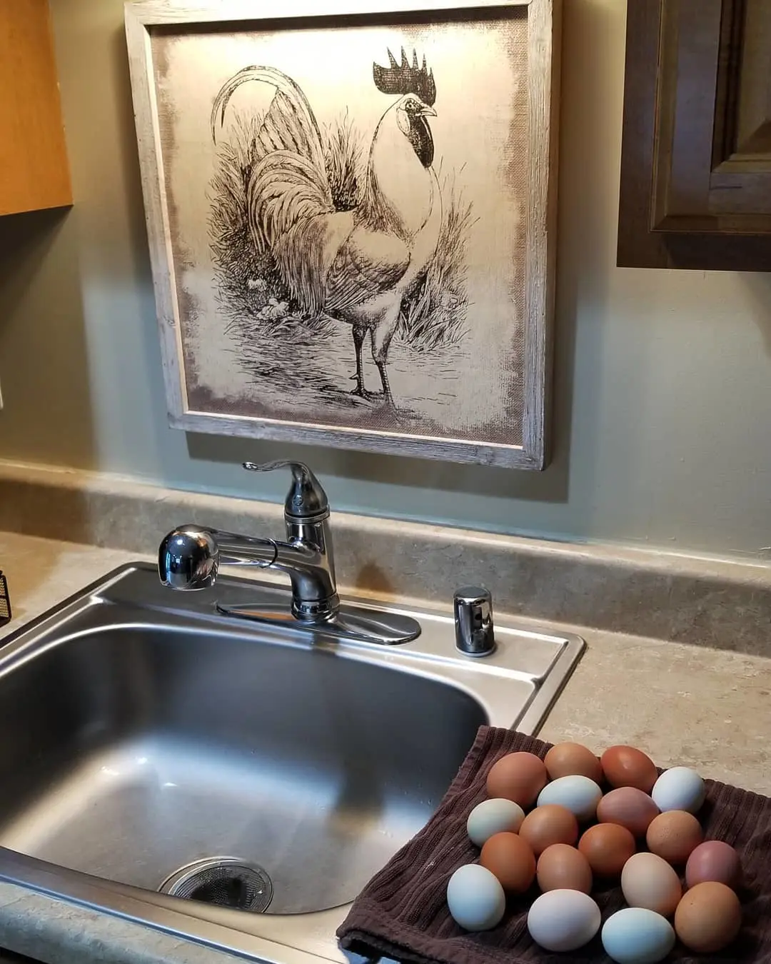 This creates a sort of barrier to bacteria entering the egg. These eggs will need no washing. Washing them strips away this protective layer. These unwashed eggs can be safely kept on your countertop at room temperature.