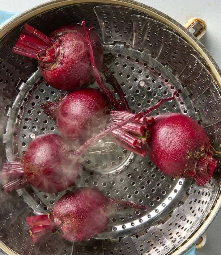 Don’t Peel Before Cooking: When boiling or roasting them, it’s best not to remove their skins until they are cooked through completely. The skins hold moisture inside and flavor making sure that there’s enough moisture so that they won’t become dry quickly. After cooking, the skins will easily come off without losing the natural sweetness of red beets.