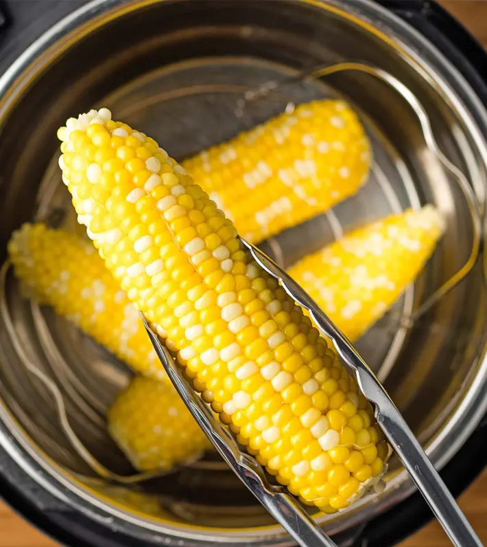 Steaming is a gentle and slower method that preserves the nutrients and taste of corn. Place corn above boiling water so that its kernels get cooked by steam coming out.