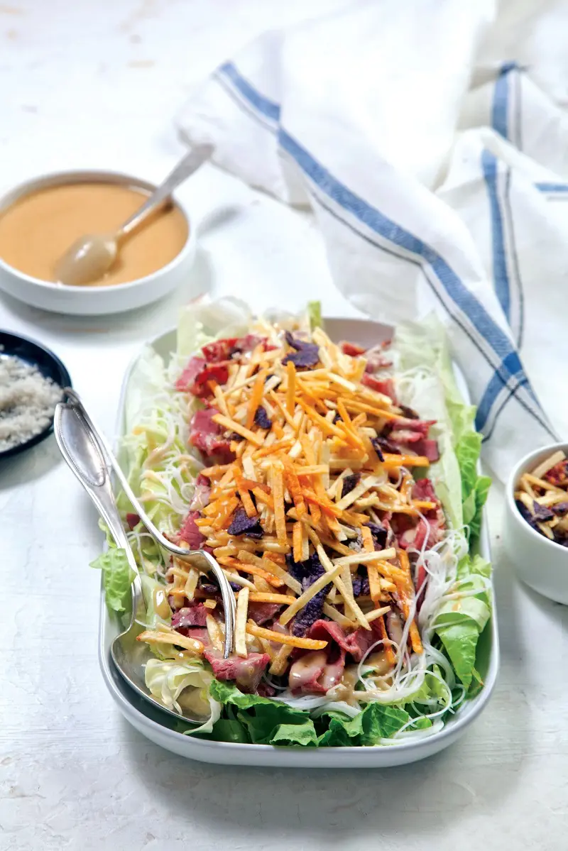 Salads are the easiest food items that can be prepared in a short time. They can be made from the vegetables as well as the meat items. Corned beef salad comprises fresh vegetables and herbs that complement the beef perfectly such as cabbage, spinach, and carrots. They add additional taste and flavor to the table.