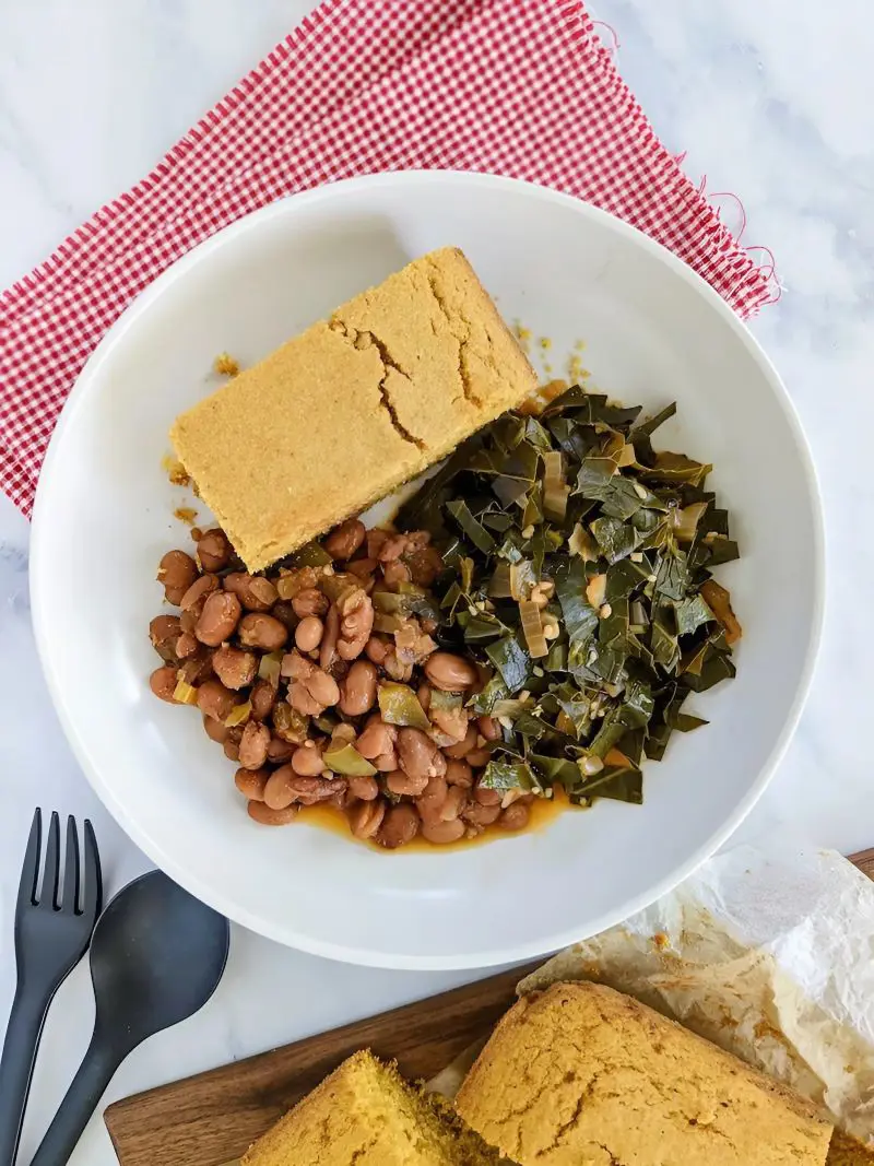 With Beans: Serve collard greens with black-eyed peas or pinto beans for a traditional Southern combination. It’s a filling and nutritious meal.
