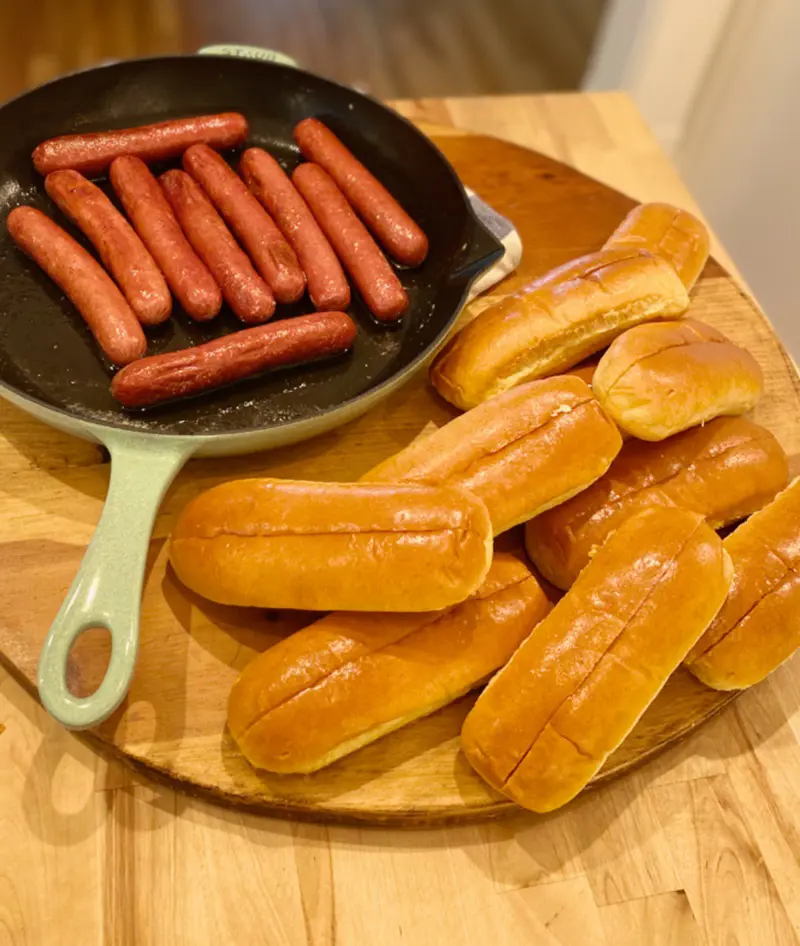 Once done, let the hot dogs rest for about 30 seconds before serving.