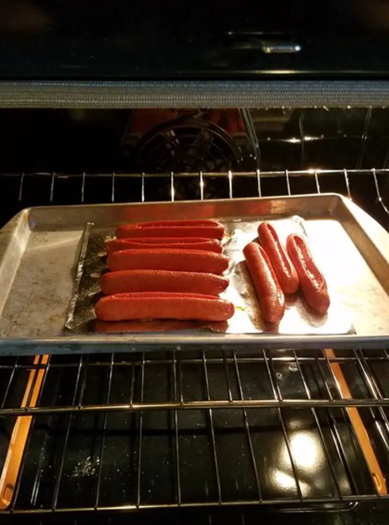 Oven-Roasting: Oven-roast hot dogs at 400°F (200°C) on a foil-lined baking sheet for 10-15 minutes, or broil for an additional 2-3 minutes for extra crispiness. It's a mess-free method ideal for cooking large batches.