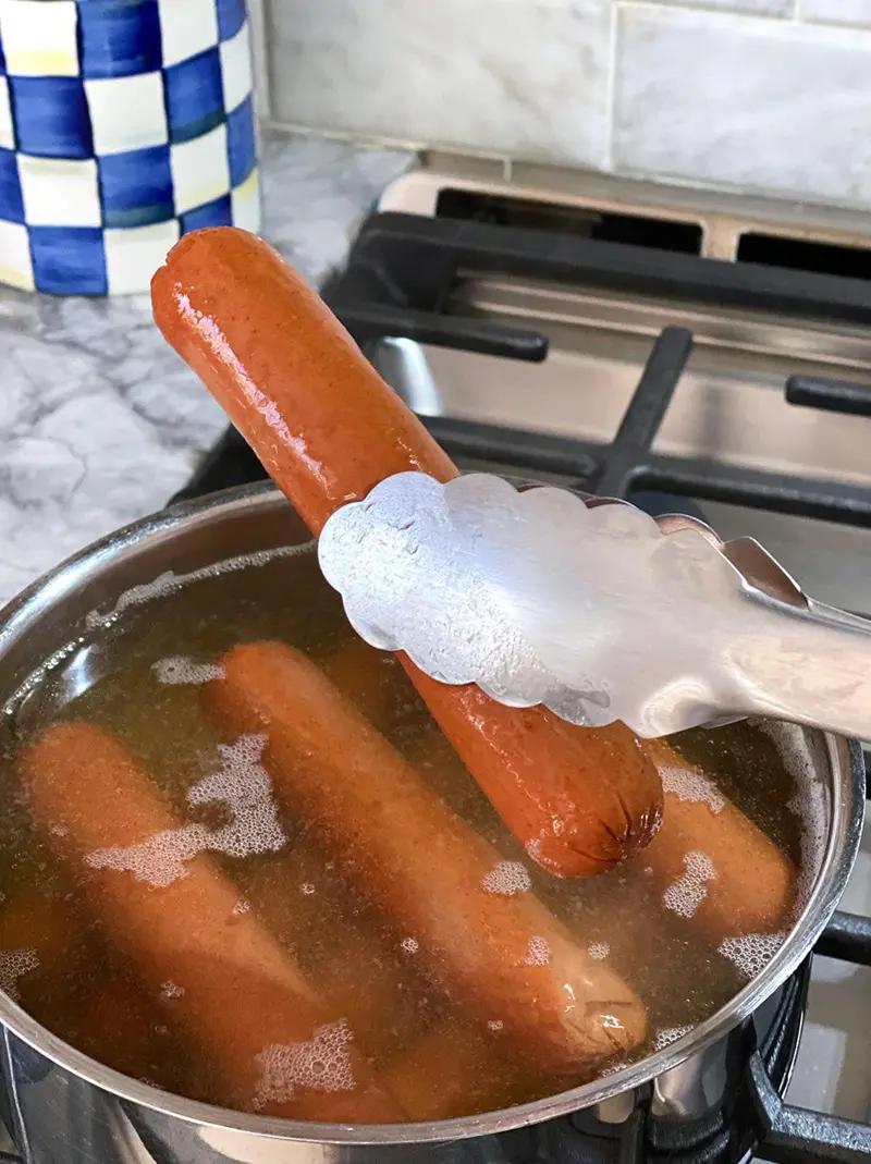 Boiling: Boil hot dogs in a pot of water for 5-7 minutes until they plump up and are heated through. This method is quick and easy, making it perfect for feeding a crowd in a pinch.