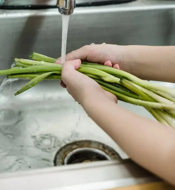 Rinse them thoroughly under cold water separating layers to get rid of any dirt or grit impurities.