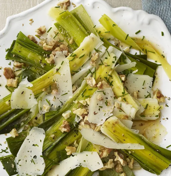Roasted or grilled leeks are also good options when added to warm salads alongside goat cheese, toasted nuts plus light vinaigrette. Their soft texture together with mildly flavored form an interesting contrast against the crispness of green-leafed plants.