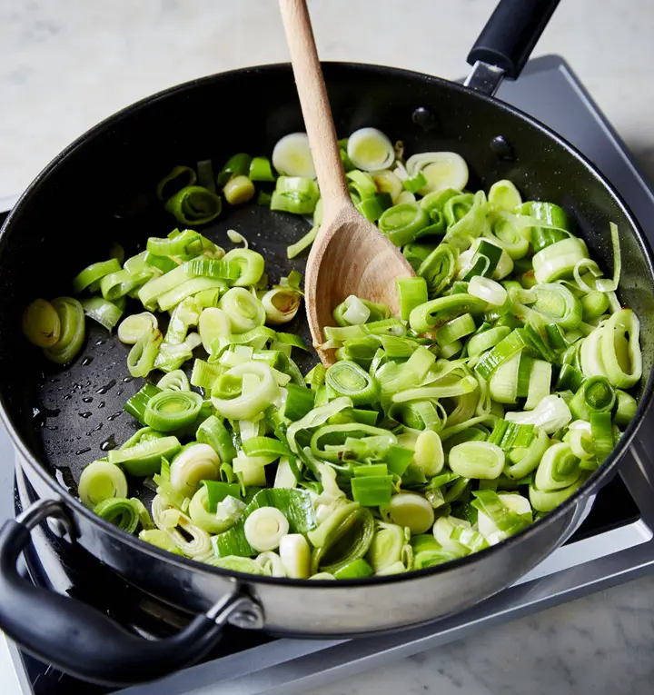 This means that cooking the leeks over low or moderate heat helps soften them gently without burning or overcooking; whether you are sautéing or simmering, this approach enables slow release of sweet taste by leeks.