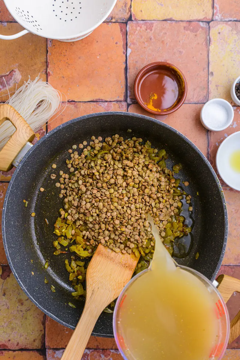 After simmering they become some and form a creamy texture which makes it a completely delicious food. Be sure to use salt and pepper for better taste in this step of cooking lentils.