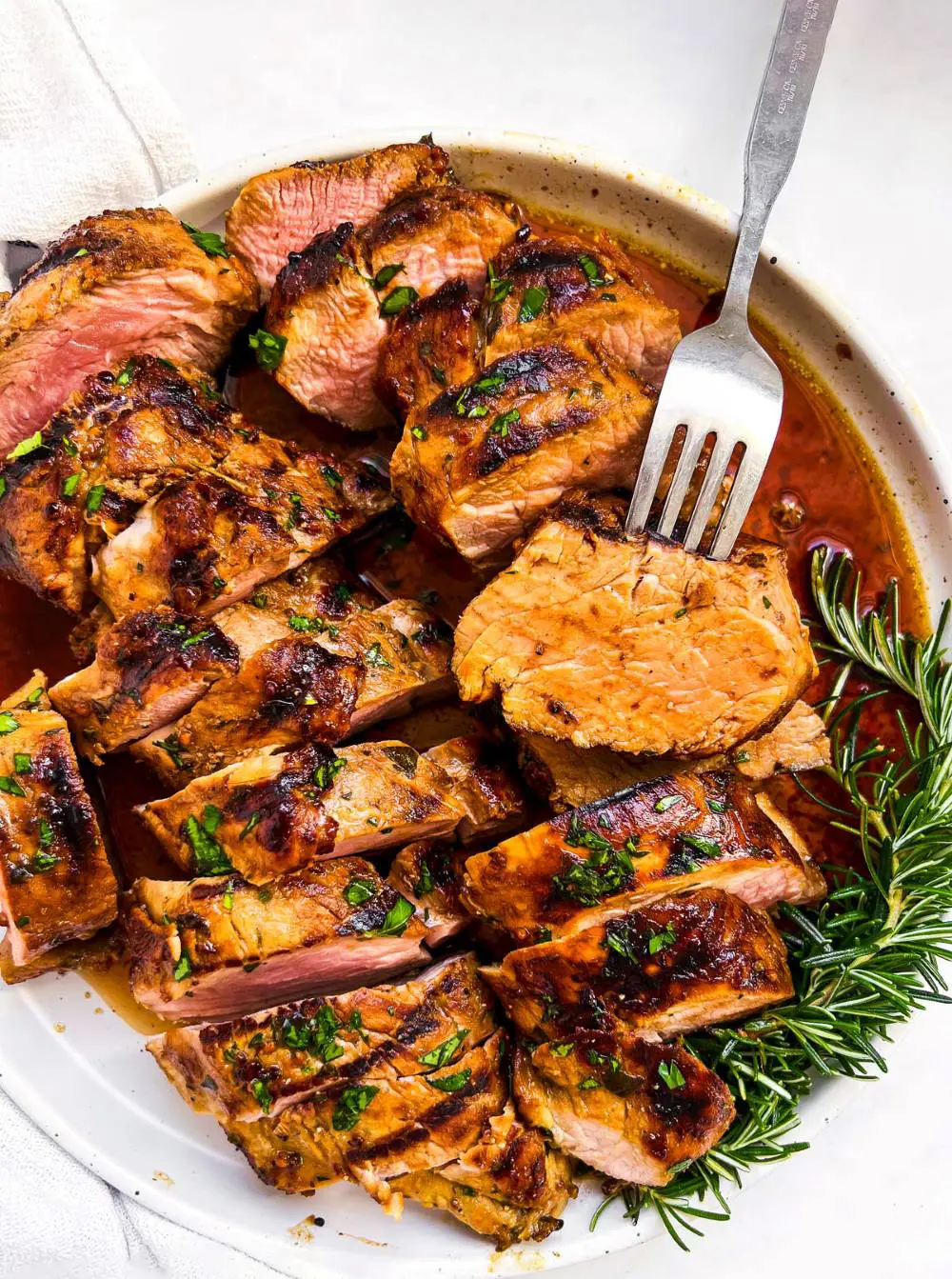 After resting, slice the pork tenderloin into medallions. Serve it with your favorite sides and sauces. The pork pairs well with roasted vegetables, mashed potatoes, or a fresh salad.