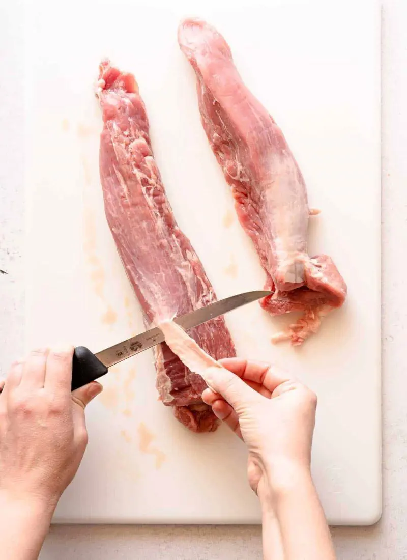 Check the tenderloin for any silver skin, a thin, silvery membrane on the surface. Using a sharp knife, carefully trim off this membrane. This step is important because silver skin can be tough and chewy.