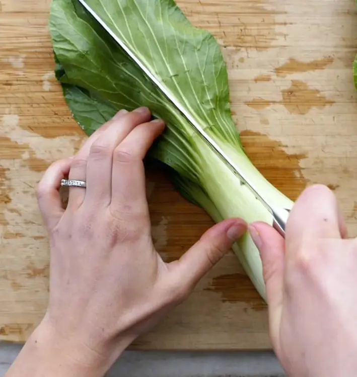 For baby bok choy, you can often leave the stalks whole and simply halve or quarter them lengthwise