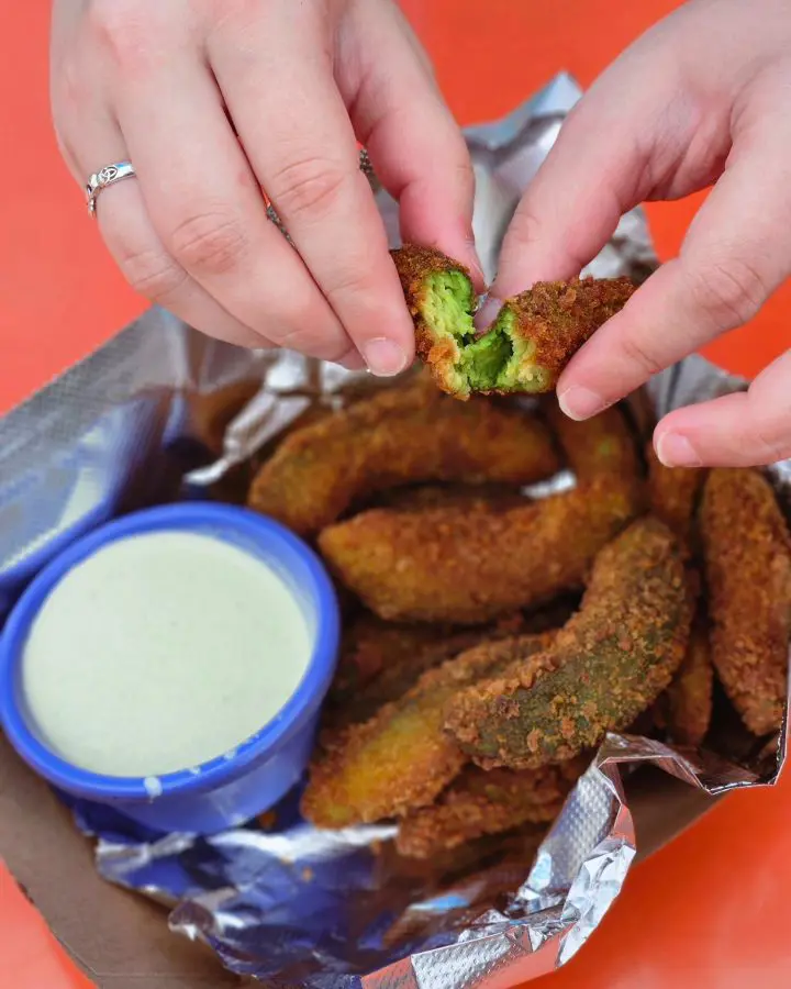 And there you go, your tasty avocado fries are ready. Lastly, serve them with a spicy chipotle dipping sauce for a great starter or side dish.