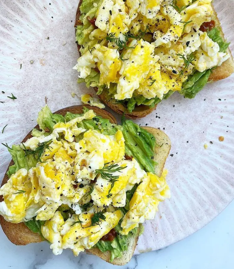 Be creative with your regular scrambled eggs, adorn them with some diced avocado while the eggs are still creamy. The warm eggs slightly soften the avocado, which creates the buttery, and velvety texture that's absolutely divine.