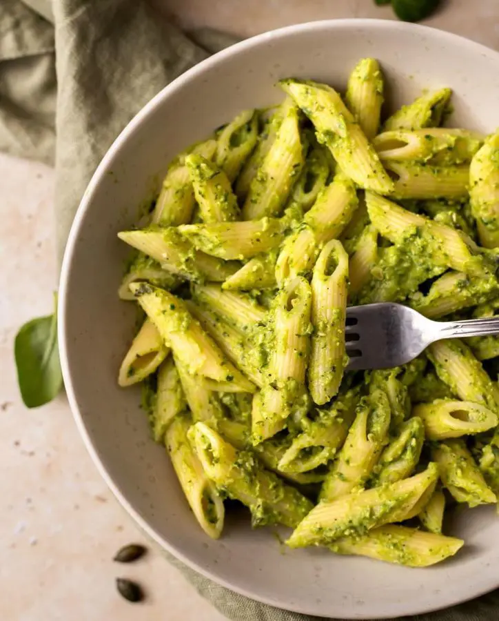After that, toss with hot pasta and watch it transform into a creamy dream. The warmth of the pasta slightly heats the sauce, which creates the perfect consistency.