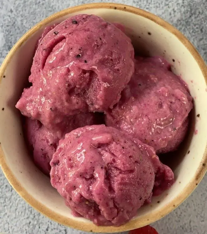The recipe is simple- open up a fresh, ripe dragon fruit, and mix it with coconut milk after that add a bit of sweetness like honey or agave, and then put the mixture in an ice cream maker or freeze it in a container. You can stir it fairly often to get an extra creamy texture.