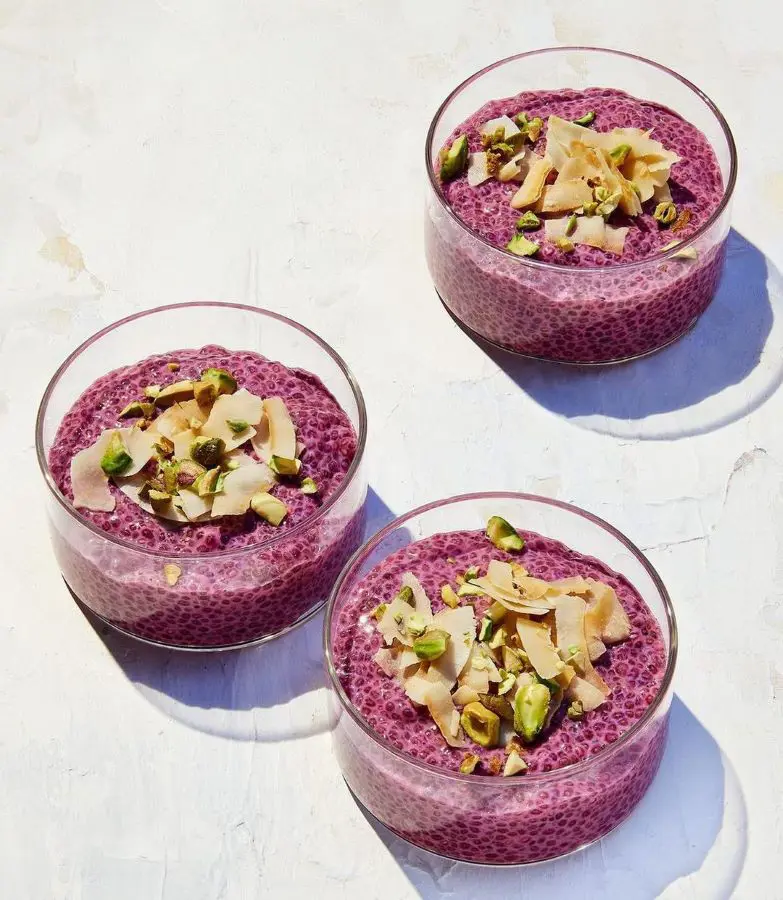 This recipe just requires chia seeds mixed in creamy plant-based milk and mashed or diced dragon fruit. Let the mixture chill in the fridge overnight. After a few hours, chia seeds will soak up the liquid and in the morning you will have a tasty meal that resembles a perfect pudding.