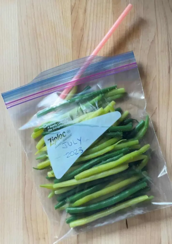 Newbies to freezing green beans should mark a date or two on the calendar during the year to check and taste them. This will be a great learning curve for you to know how the flavor and texture of the beans change over an extended freezer period.
