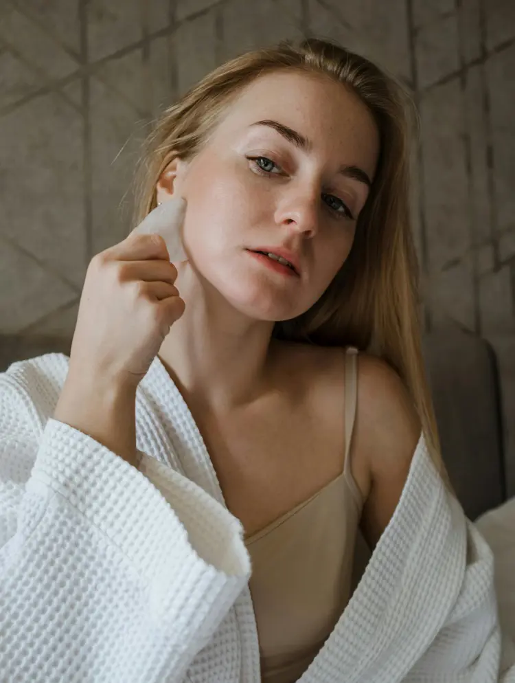 Daily Gua Sha may reduce tension experienced in the neck and jaw muscles, and enhance skin elasticity which contributes to the shape of the jawline.