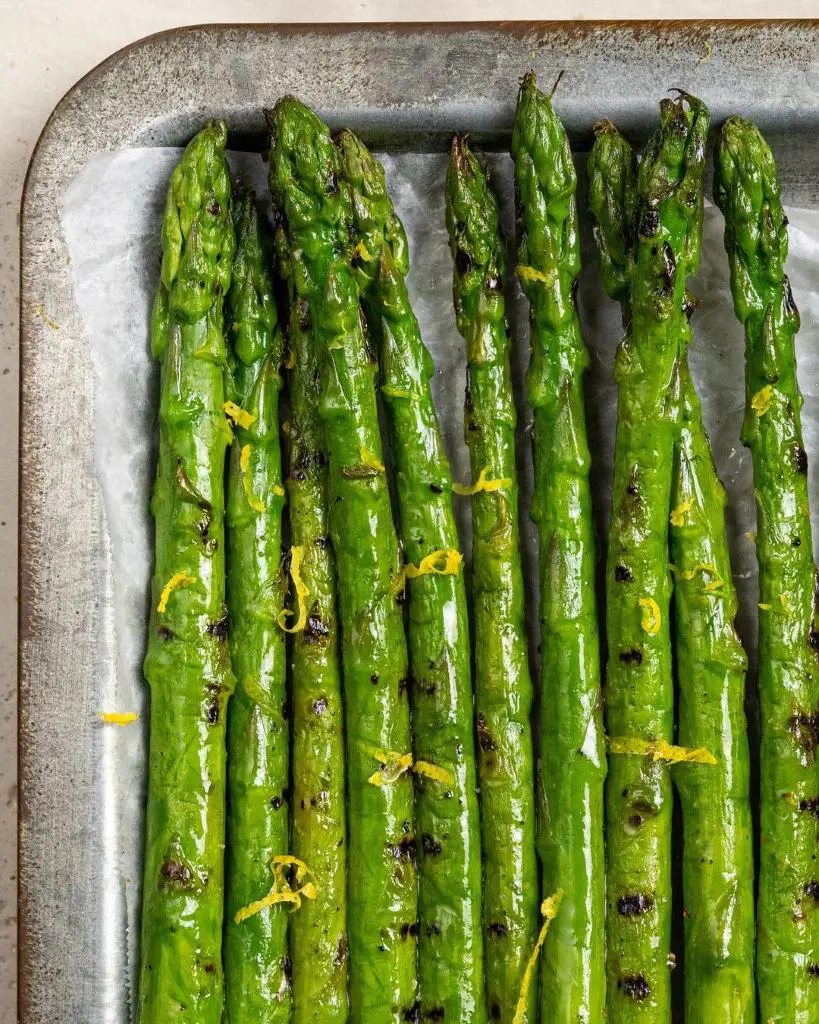 Lemon Pasta: Plain pasta with lemon sauce works well with grilled asparagus. The sour lemon helps bring out the asparagus flavor. This simple mix of pasta and vegetables makes a good dinner without much work.