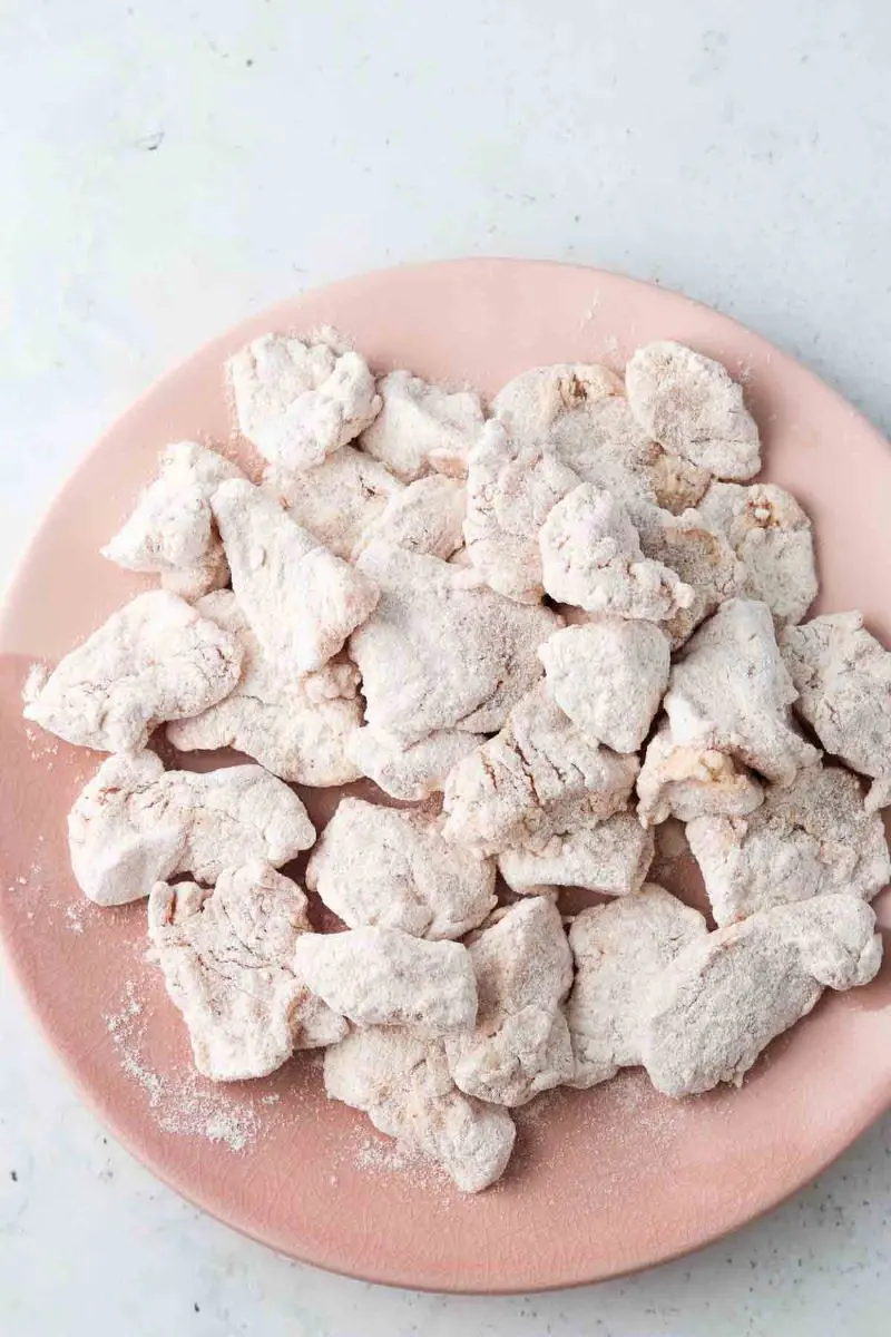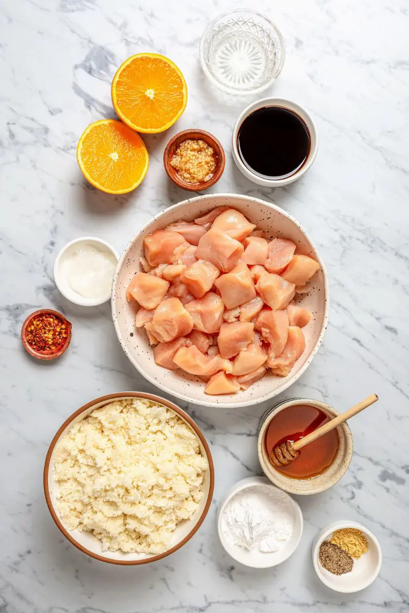 Boneless and Skinless Chicken: Orange chicken is mainly made from boneless and skinless chicken breasts or thighs. So, grab 2 pounds of chicken.